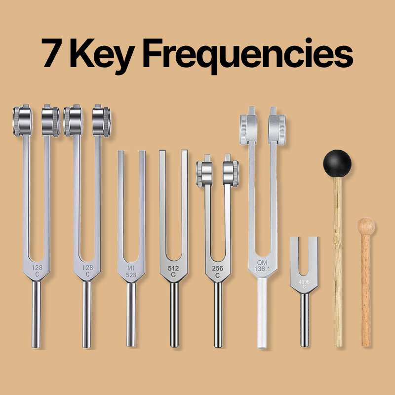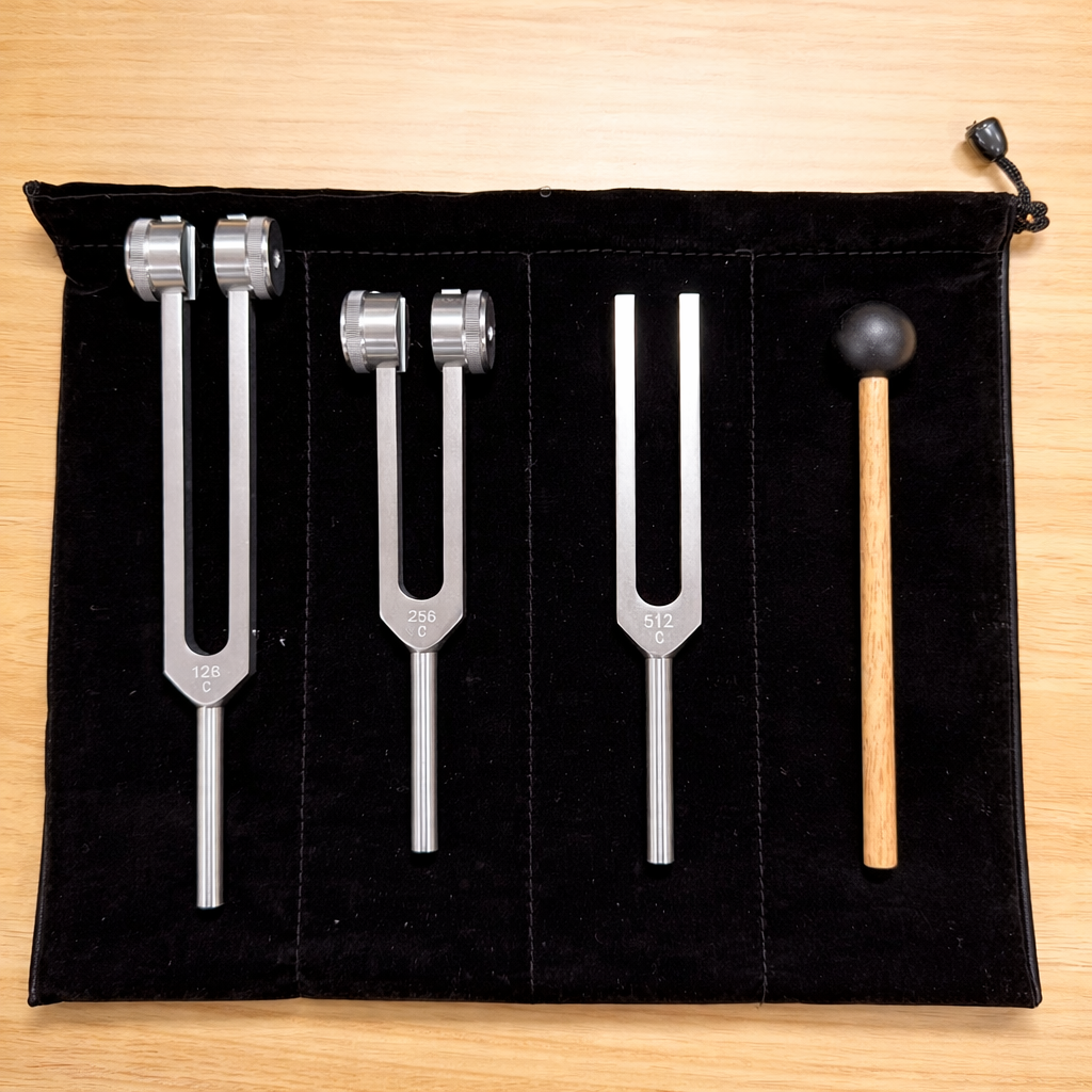 Each fork carries a different frequency, creating slightly different sensations in the body — some more grounding, others more uplifting. Together, they create a more balanced experience.